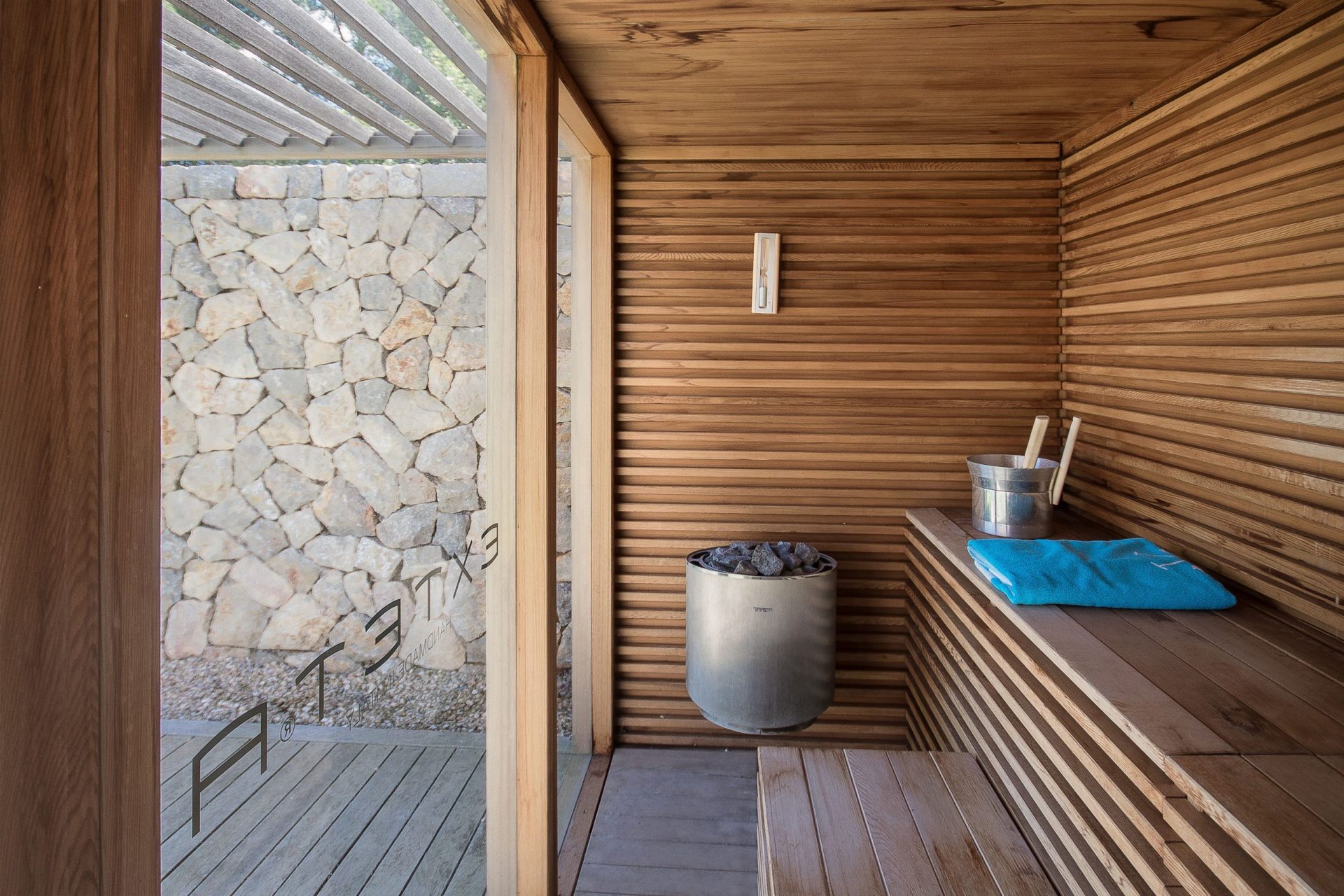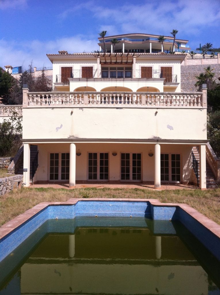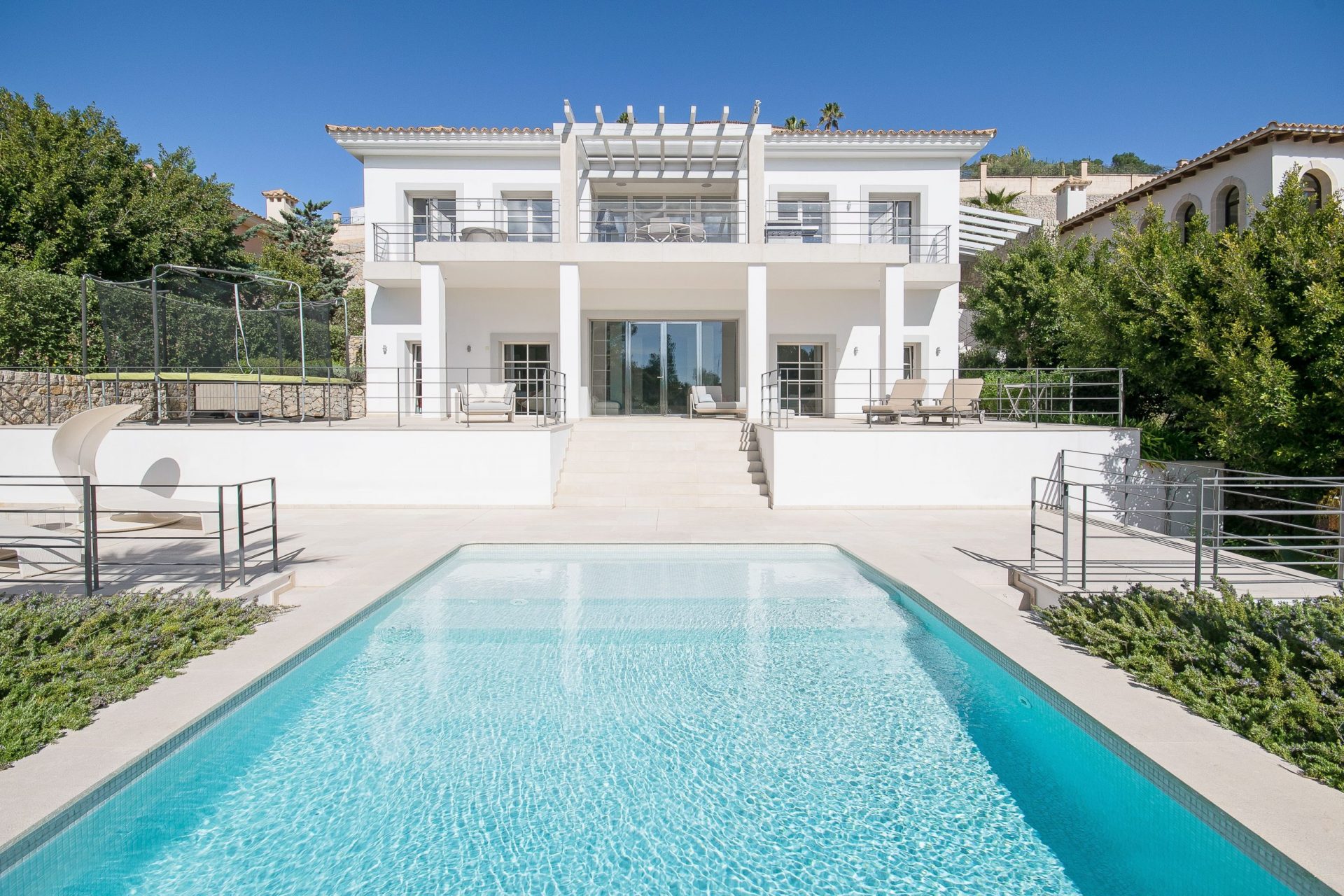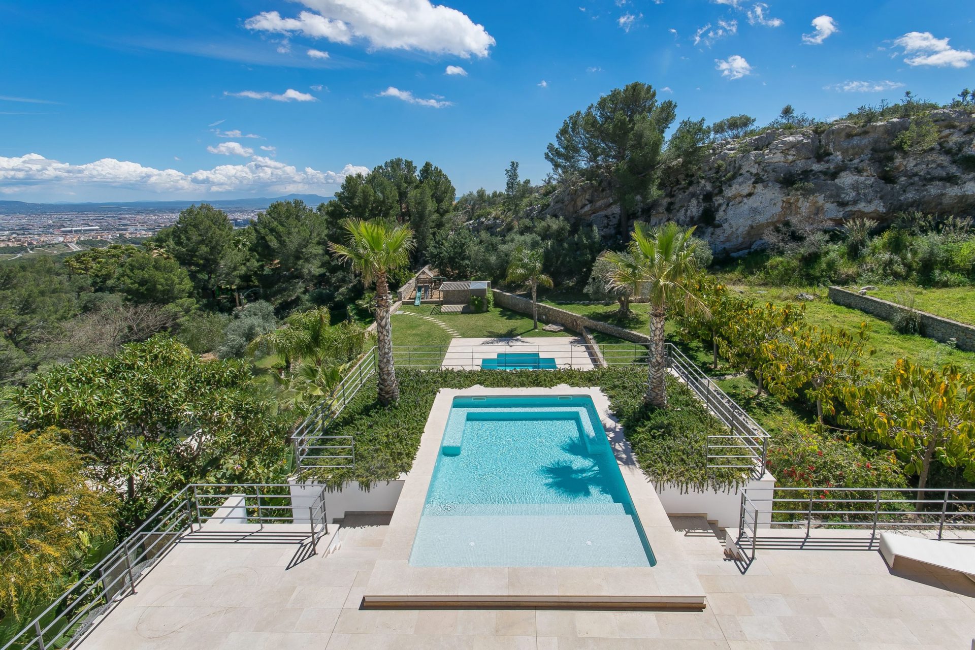 Während die ursprüngliche Struktur erhalten blieb, wurde die Immobilie in eine luxuriöse Villa mit modernem Design und klaren Linien verwandelt. Zwei Pools auf unterschiedlichen Ebenen eröffnen einen traumhaften Blick über Palma bis hin zum Meer.