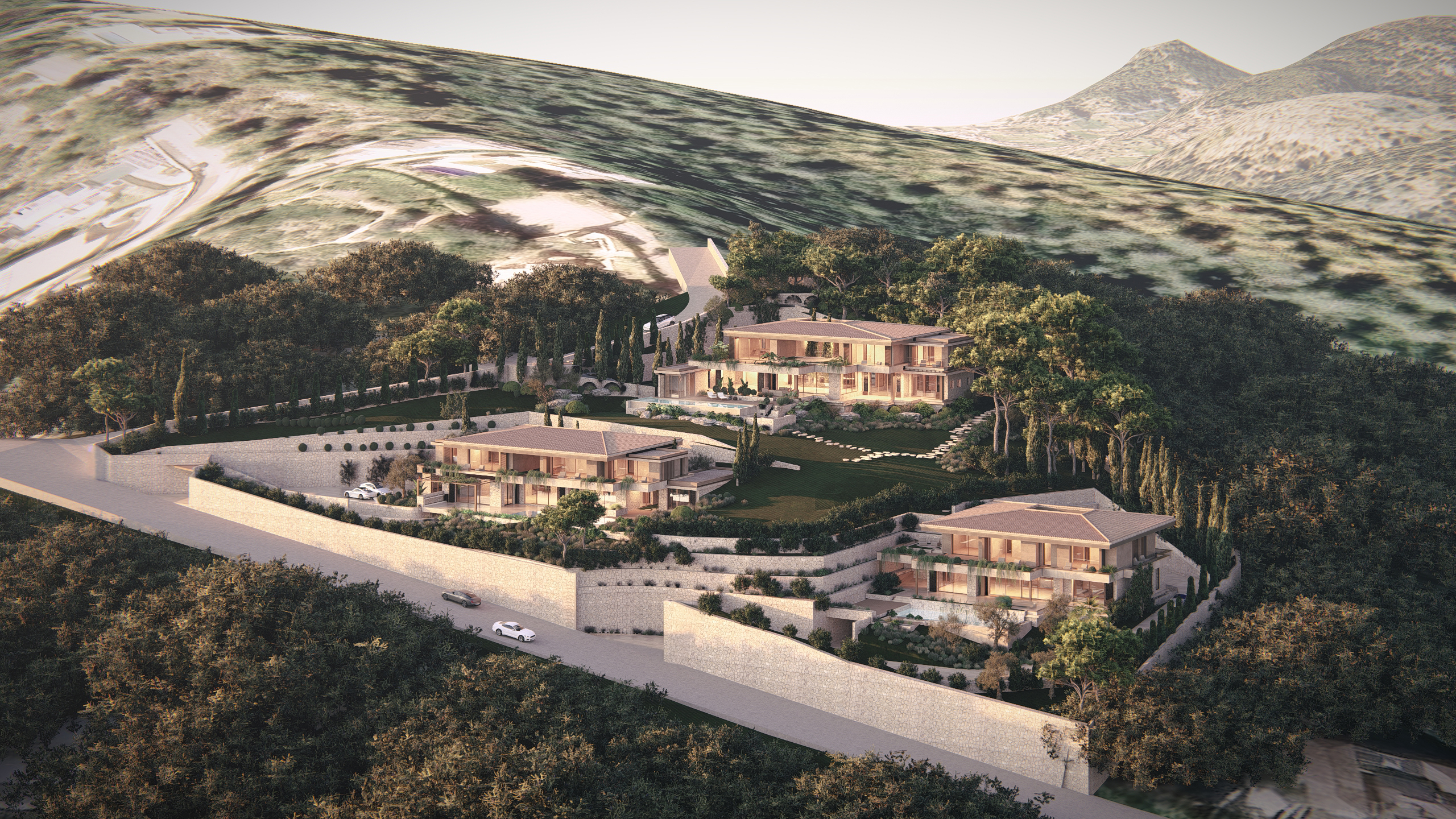 Als drittes Projekt auf dem Hügel von Son Vida präsentiert sich Aramis mit einer Architektur, die moderne Klarheit und mediterrane Leichtigkeit vereint. Großzügige Fensterflächen öffnen den Blick in die Umgebung und lassen Innen- und Außenbereiche nahtlos miteinander verschmelzen. Natürliche Materialien, ausgewogene Proportionen und eine zeitgemäße Formsprache schaffen ein Zuhause, das Stil und Ruhe ausstrahlt – elegant, offen und harmonisch in seiner Wirkung.