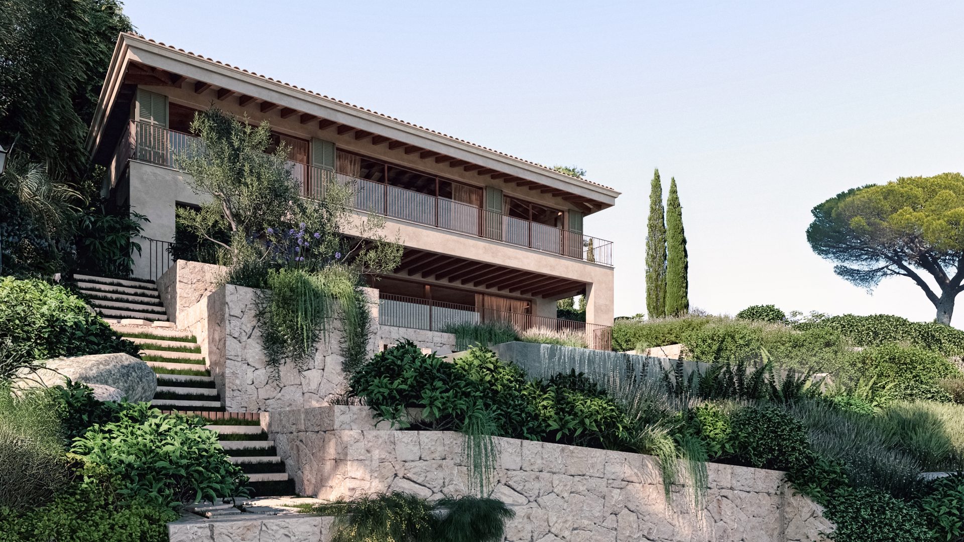 Diese atemberaubende Villa in einer der begehrtesten Lagen von Bendinat bietet eine perfekte Kombination aus modernem Design und mediterranem Charme. Die Südausrichtung sorgt den ganzen Tag für Sonne und ermöglicht einen panoramischen Ausblick auf das glitzernde Mittelmeer und die umliegende Natur.