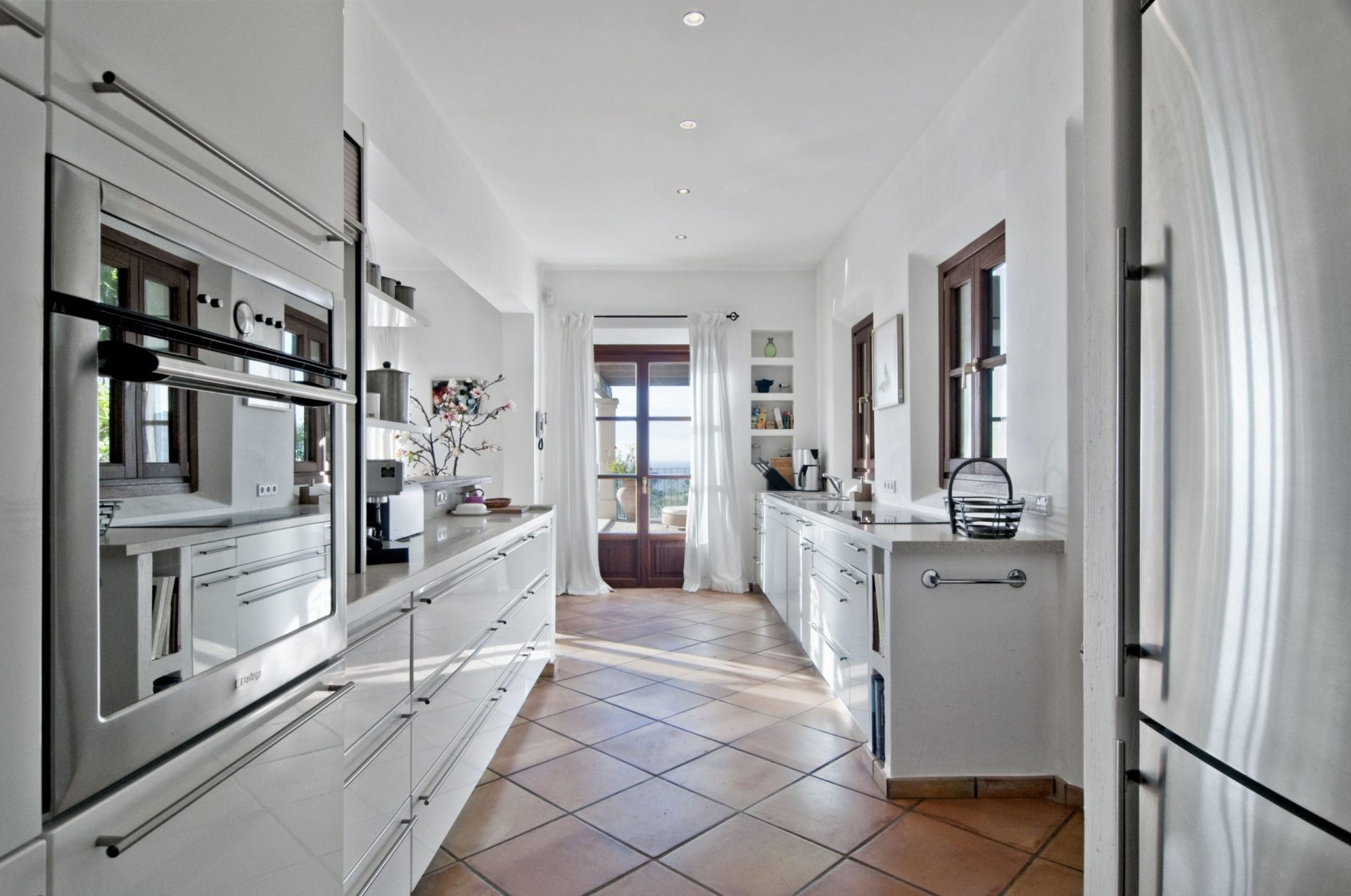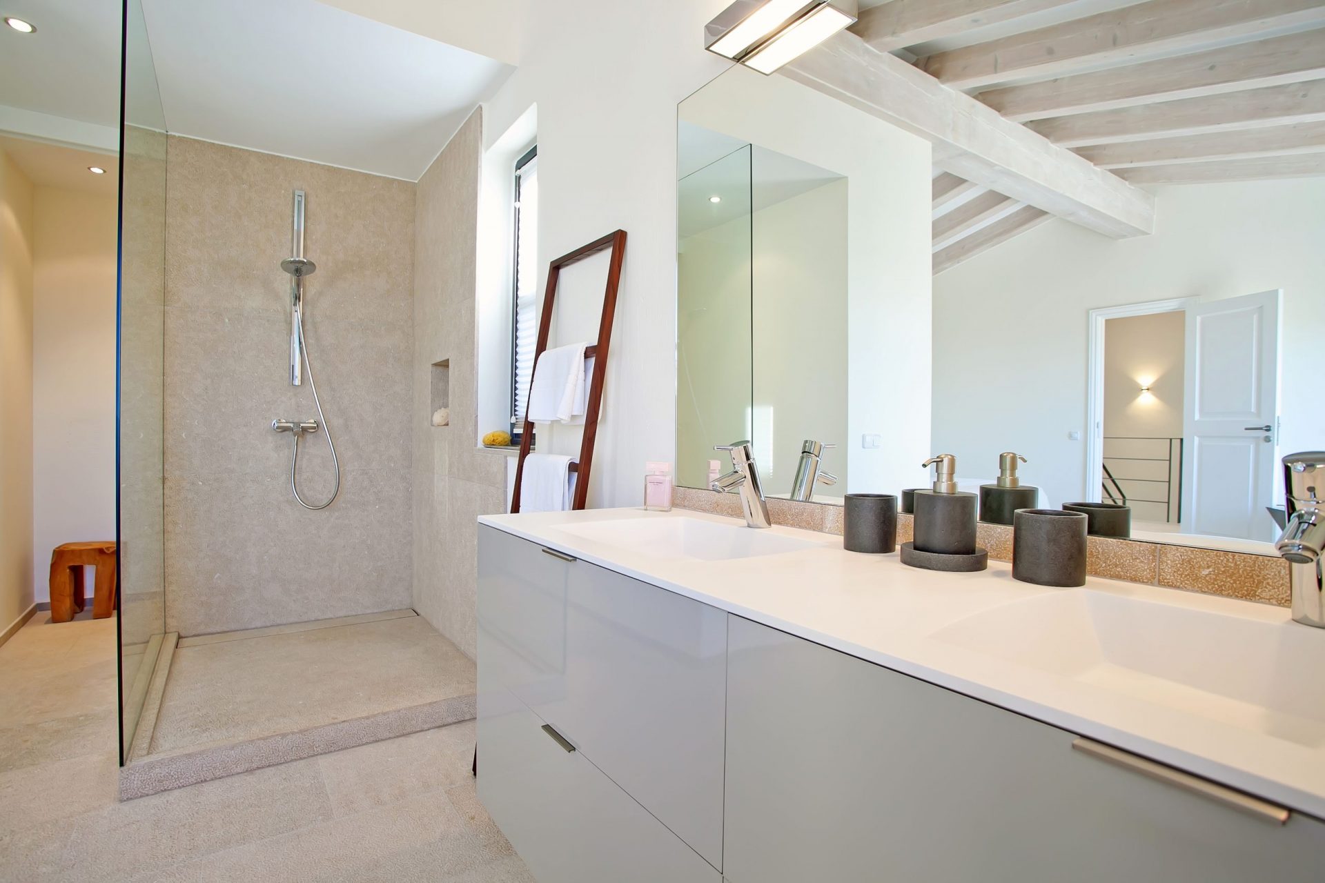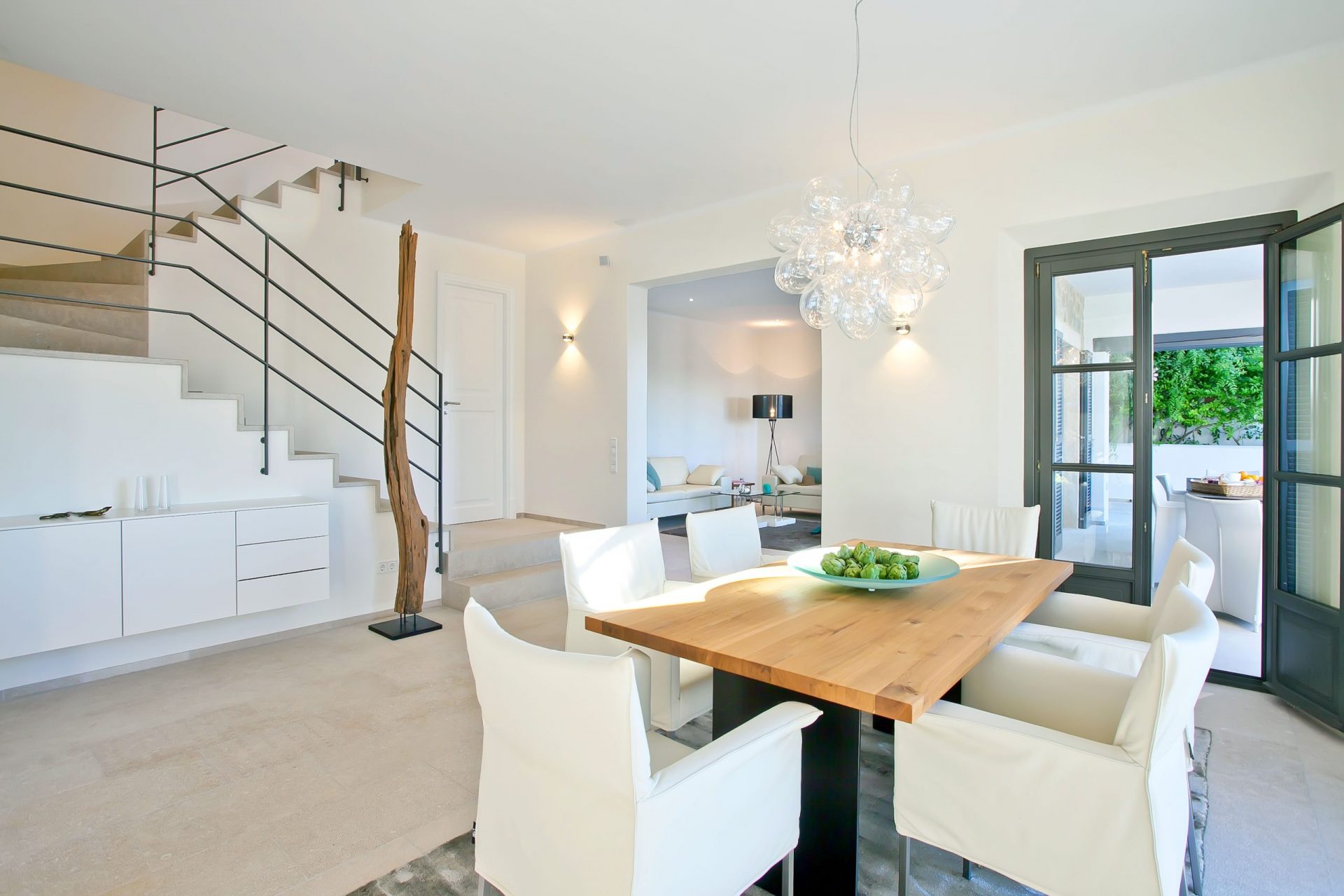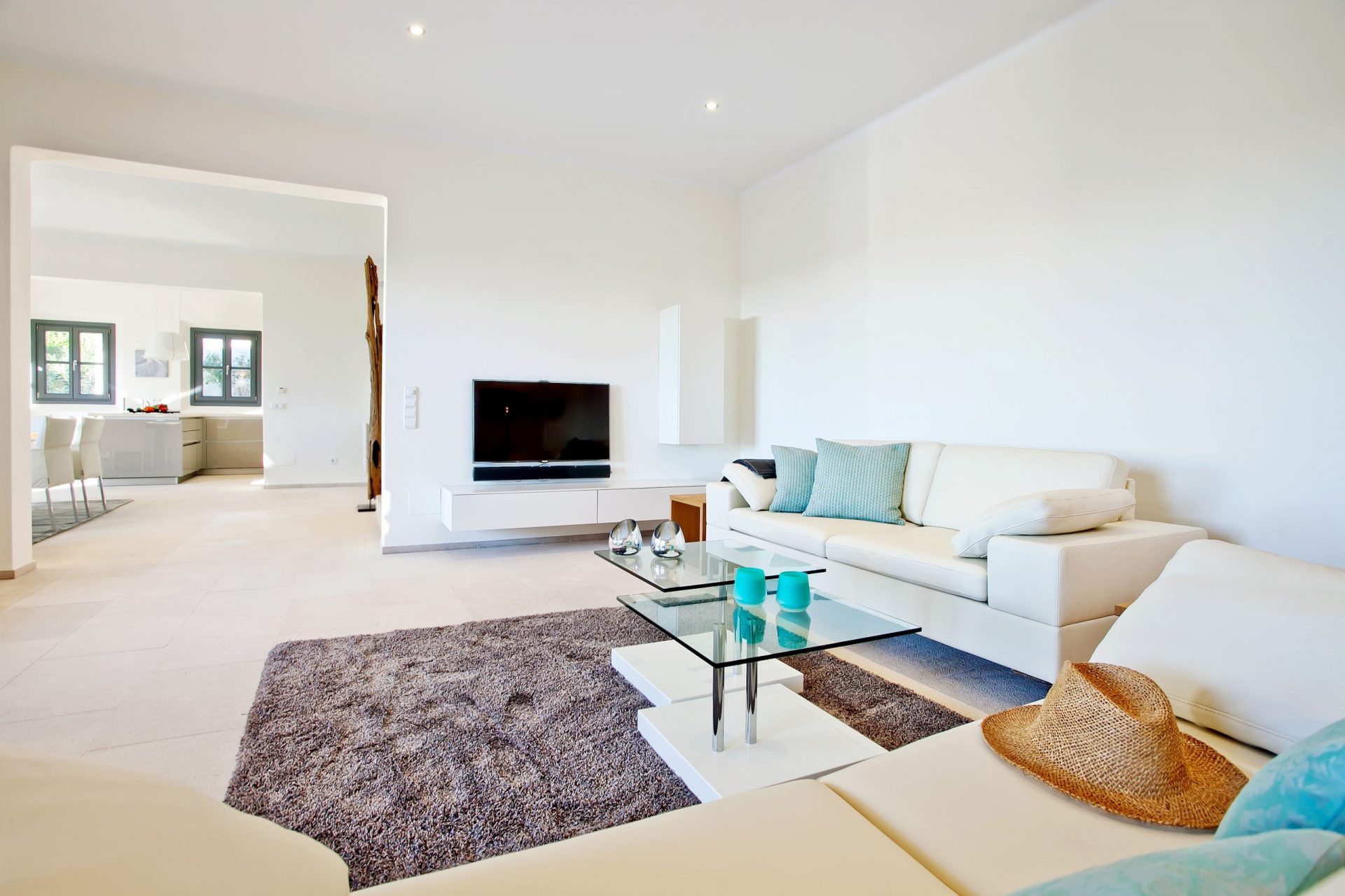 Dem gesamten Innenbereich wurden helle Wände, Steinböden, weiße Holzbalken und große Fenster hinzugefügt, um eine helle und geräumige Atmosphäre zu schaffen. Zudem verfügt die Villa über drei Schlafzimmer mit en-suite Badezimmern, von denen aus man den wunderschönen Ausblick genießen kann.