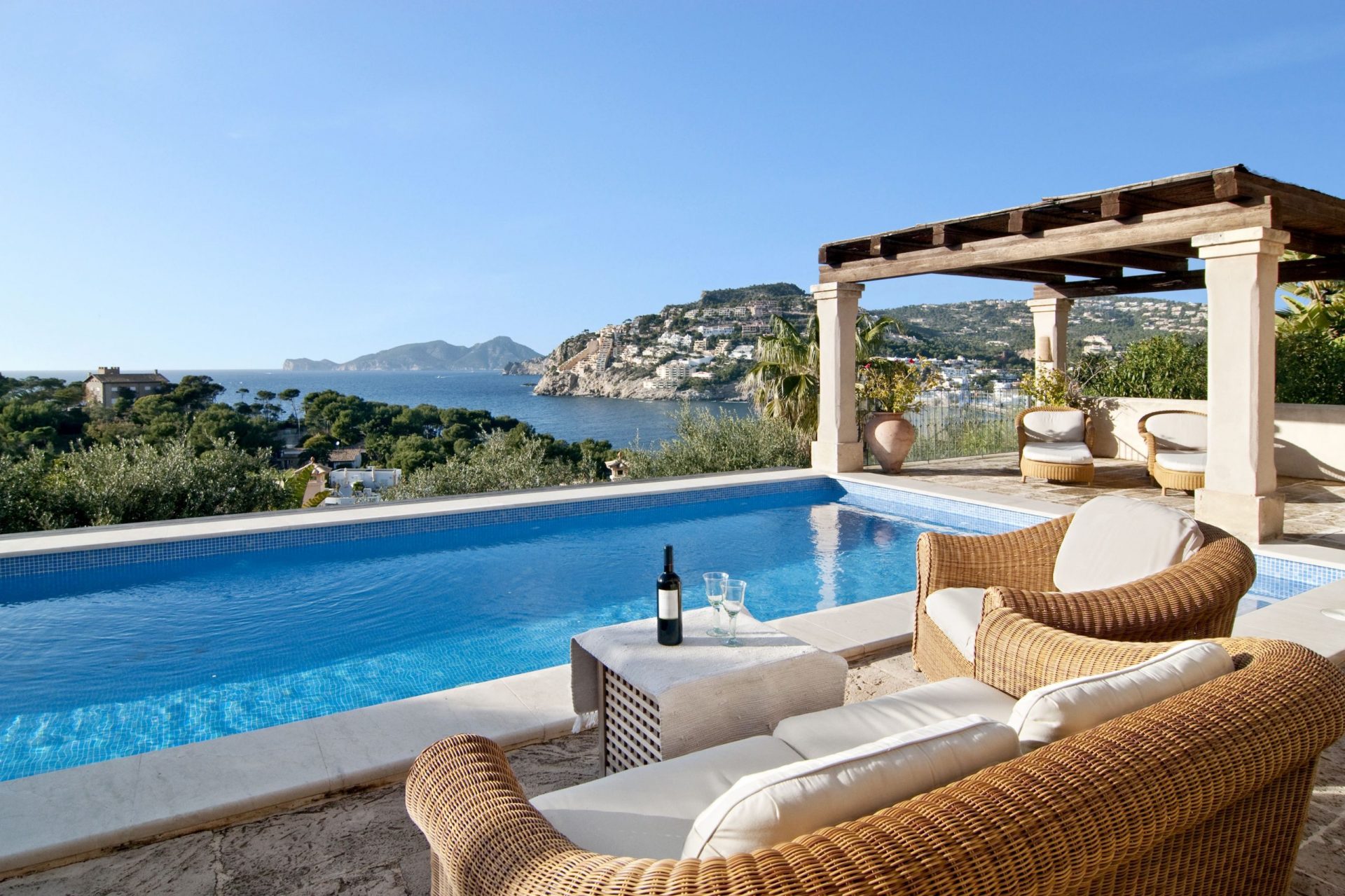 Die große Terrasse und der Pool-Bereich mit fantastischen Meerblick bilden das Highlight des Hauses.