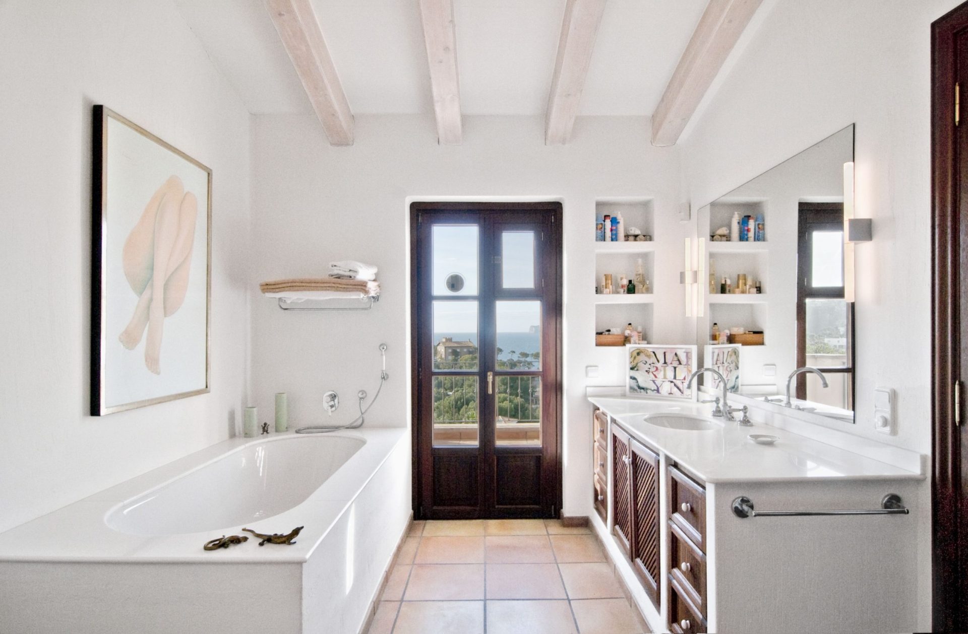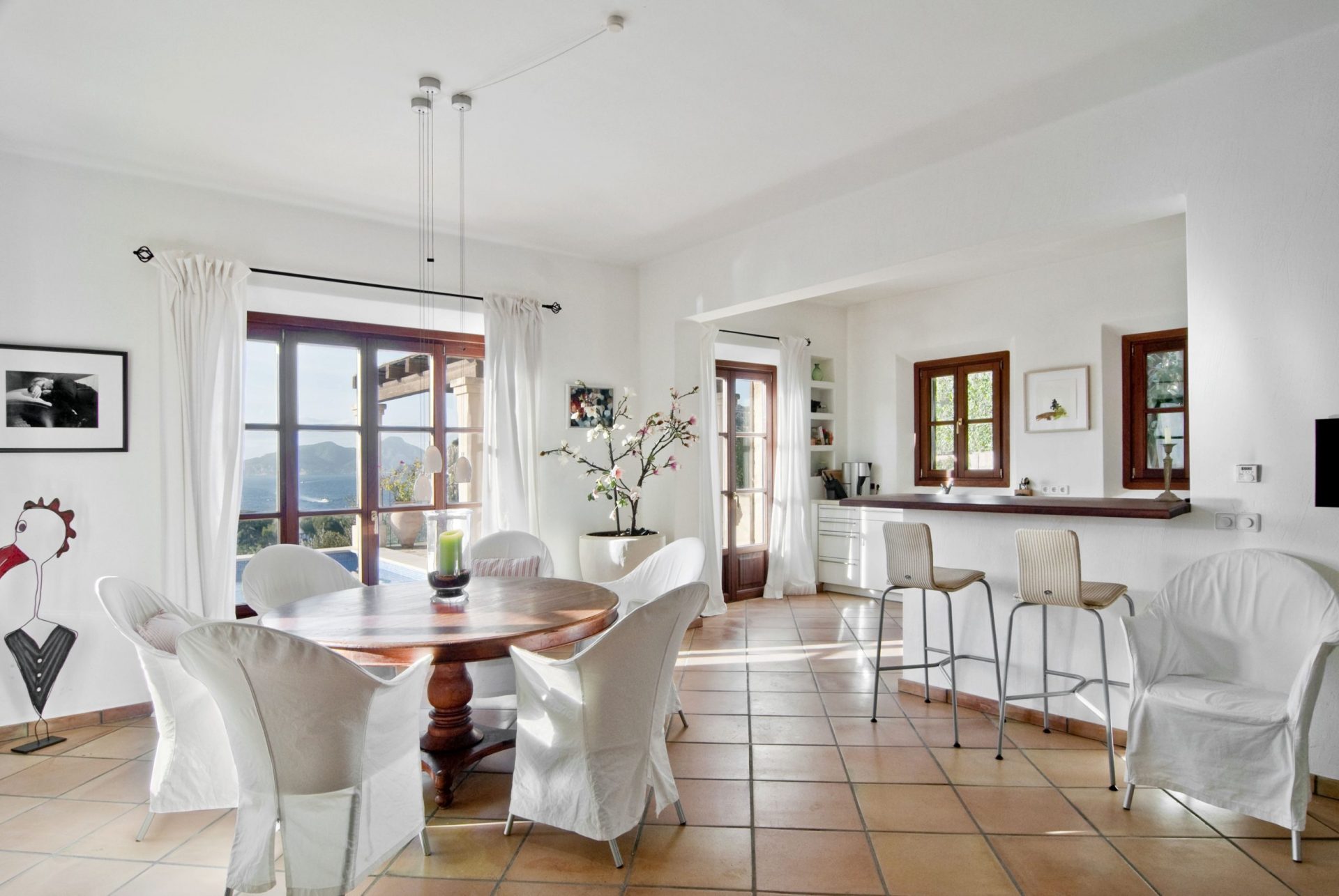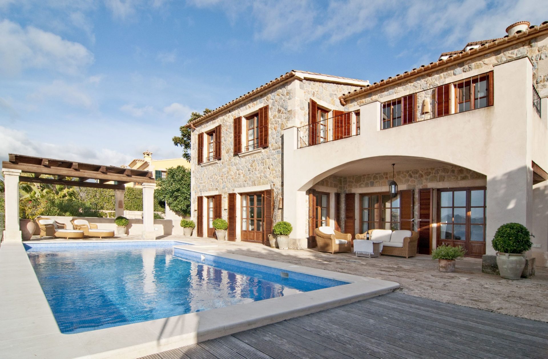 Diese Villa in top Lage genießt einen unvergleichlichen Ausblick über Puerto Andratx, das weite Meer und die Dragonera Insel. Vor der Renovierung durch apm verkörperte das Anwesen eine in die Jahre gekommene, rustikale Atmosphäre. Deshalb hat apm das gesamte Anwesen renoviert und modernisiert, wobei die mallorquinische Atmosphäre mit ihren Holzbalken und traditionellen Steinfassaden erhalten wurde.