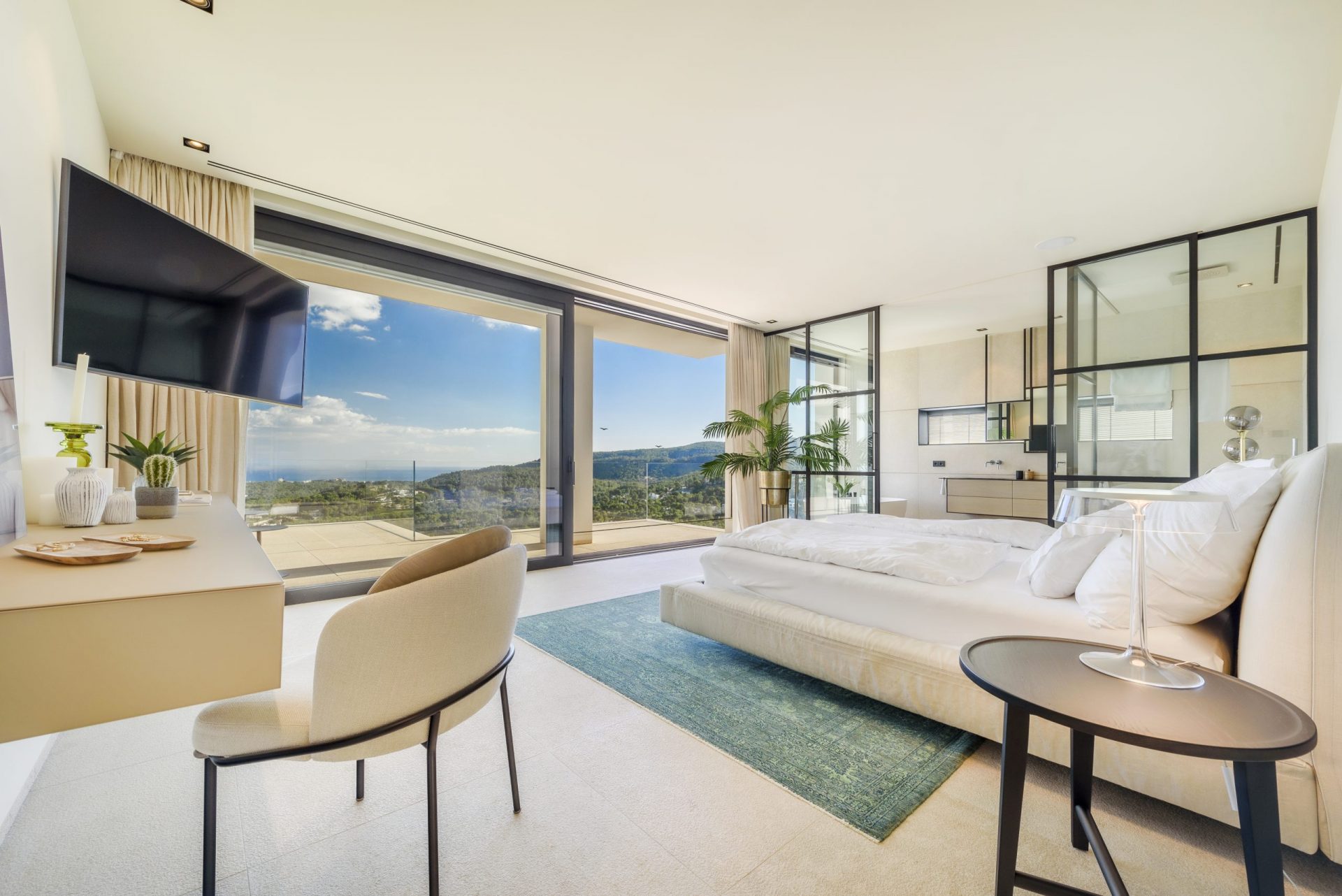 Das kürzlich fertiggestellte Projekt Solanda, mit Lage in Son Vida, einer exklusiven Gegend von Palma, bietet einen beeindruckenden Blick über das Meer bis hin zur berühmten Kathedrale Palmas. Die Kombination klarer Linien mit Naturstein unterstreicht den modernen Architekturstil dieses Objektes. Im Zusammenspiel ergeben der einladende Wohnbereich mit Kamin und die Küche von Birgit Müller eine gemütliche Wohnatmosphäre. Die Villa beeindruckt mit fünf luxuriösen Schlafzimmern, die jeweils über ein elegantes Bad en suite verfügen. Hochwertige Materialien und großzügig gestaltete Innen- und Außenbereiche schaffen eine exklusive Atmosphäre, die Komfort und Stil perfekt miteinander verbindet.