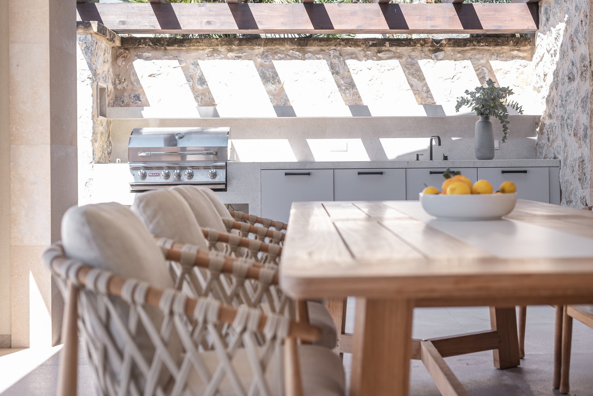 Son Tio ist eine idyllische Finca in S’Arracó, die sich auf einem weitläufigen Grundstück von 204.874 qm erstreckt. Das großzügige Anwesen verfügt über insgesamt sechs Schlafzimmer. Im Erdgeschoss befindet sich der offene Wohn- und Essbereich mit einer modernen Küche, die nahtlos in die große Terrasse übergeht. Von hier aus genießen Sie einen atemberaubenden Blick auf die Umgebung. Die sichtbaren Balken und der sich wiederholende Naturstein unterstreichen den Charme der Finca.