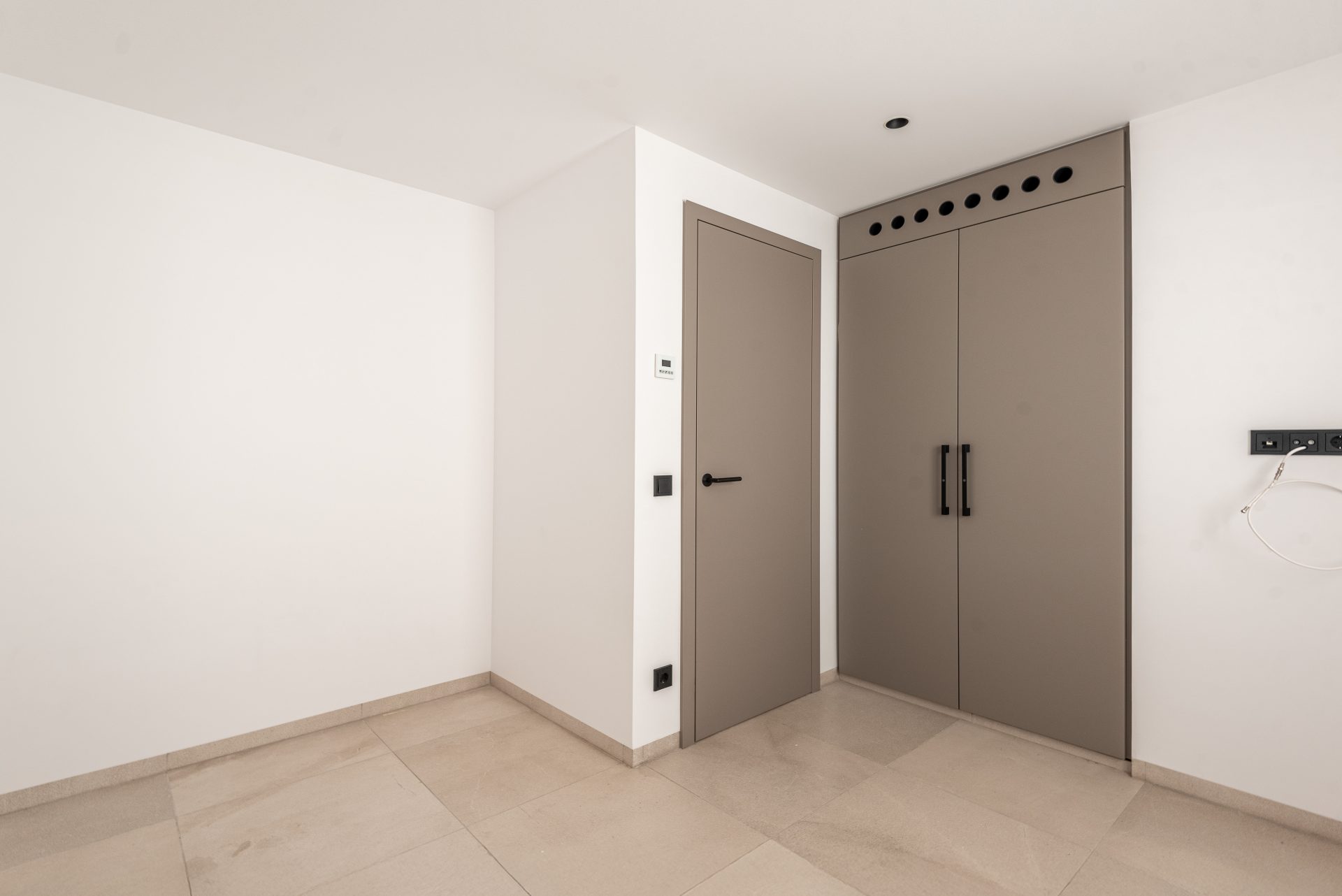 Die Wohnung bietet zahlreiche hochwertige Ausstattungsmerkmale, darunter ein Aufzug, Fußbodenheizung und Klimaanlage für maximalen Komfort. Sicherheit wird durch eine Alarmanlage gewährleistet. Ein großzügiger Gemeinschaftspool lädt zum Entspannen ein. Praktische Extras wie ein Abstellraum im Erdgeschoss, ein überdachter Privatparkplatz und eine moderne, intelligente Haustechnik runden das Angebot ab.
