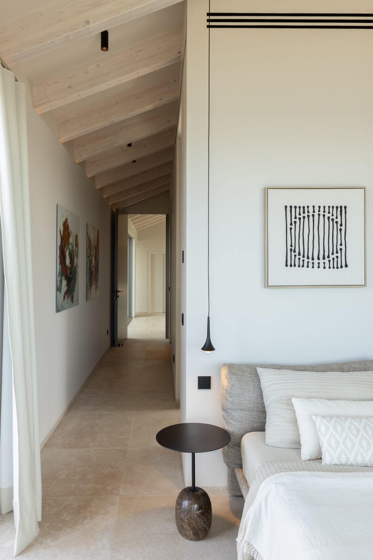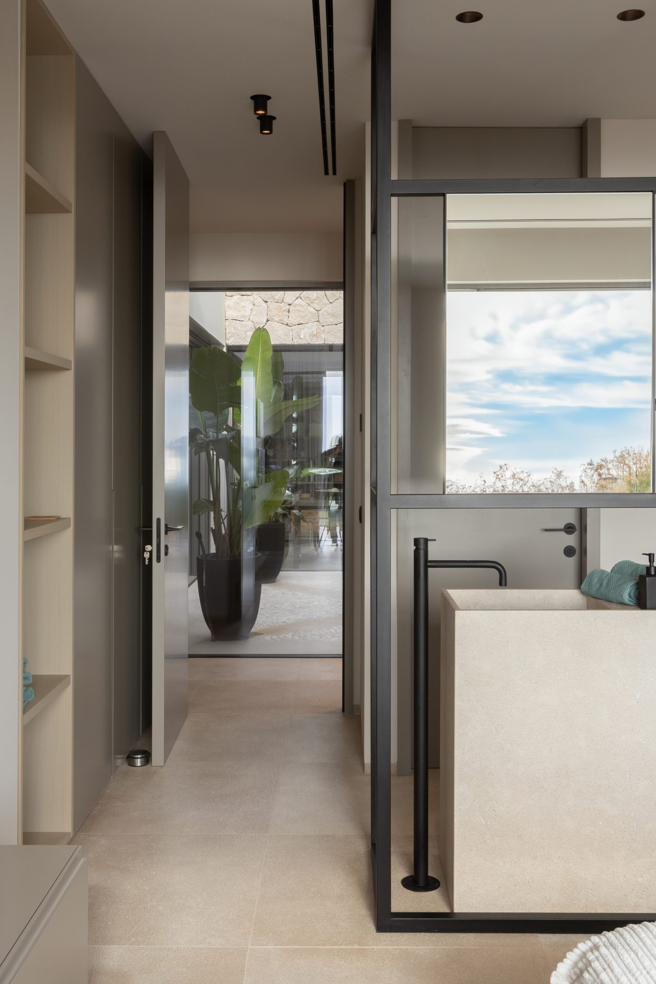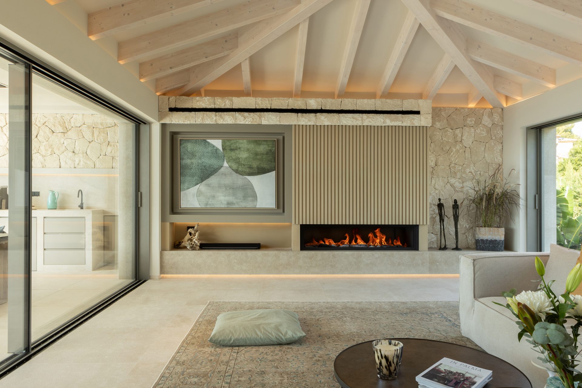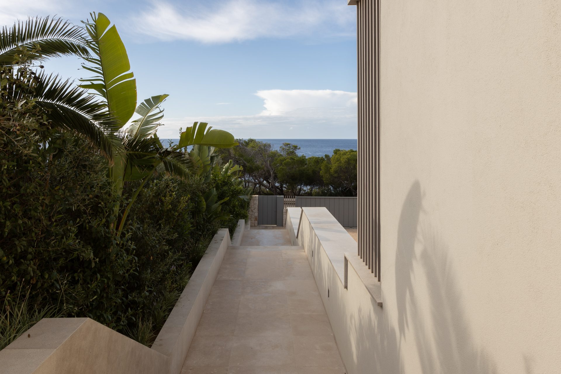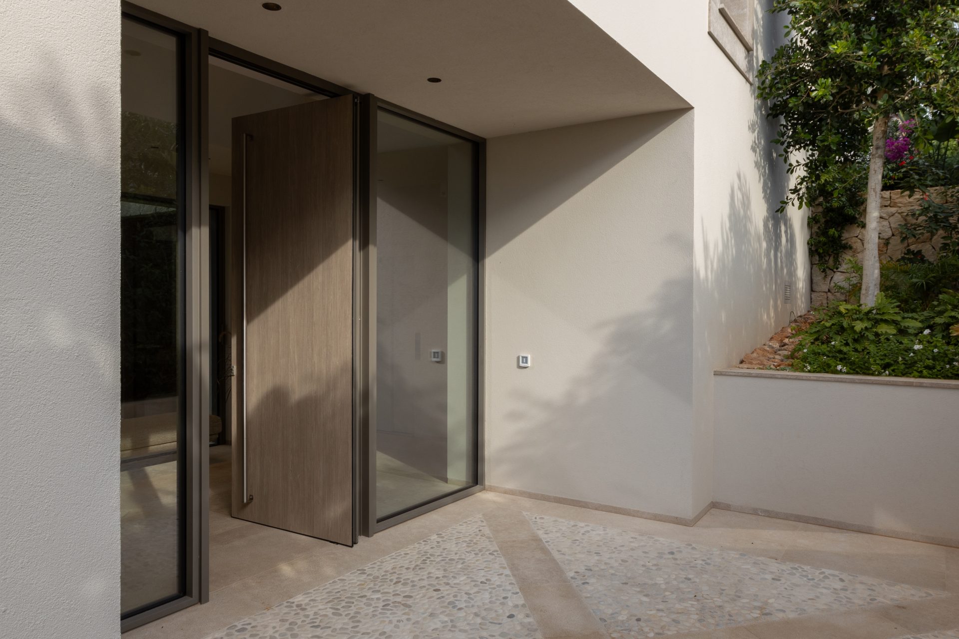 An elegant single-family home in Santa Ponsa with stunning views of the Malgrats Islands. This property combines Mediterranean design with modern elements and high-quality natural stone accents. The light-filled interiors and open-plan layout create a warm and inviting atmosphere.