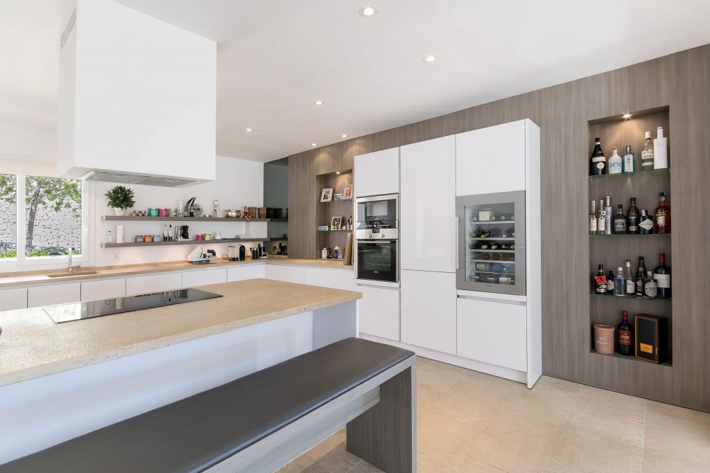 Alcoraia features one main house with guest, and staff apartments and two living areas. Although the original structure of the property has been maintained, all the interiors have been updated to offer a sleek, contemporary style which extends to the new exterior façade. It now features elegant, clean white lines and natural stone trim around the terrace and windows.
