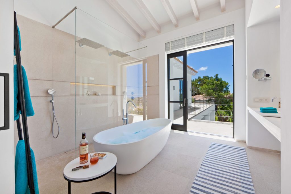 The villa features four bedrooms, three bathrooms as well as a guest bathroom and a stylish salt water pool with a size of 50 sqm.