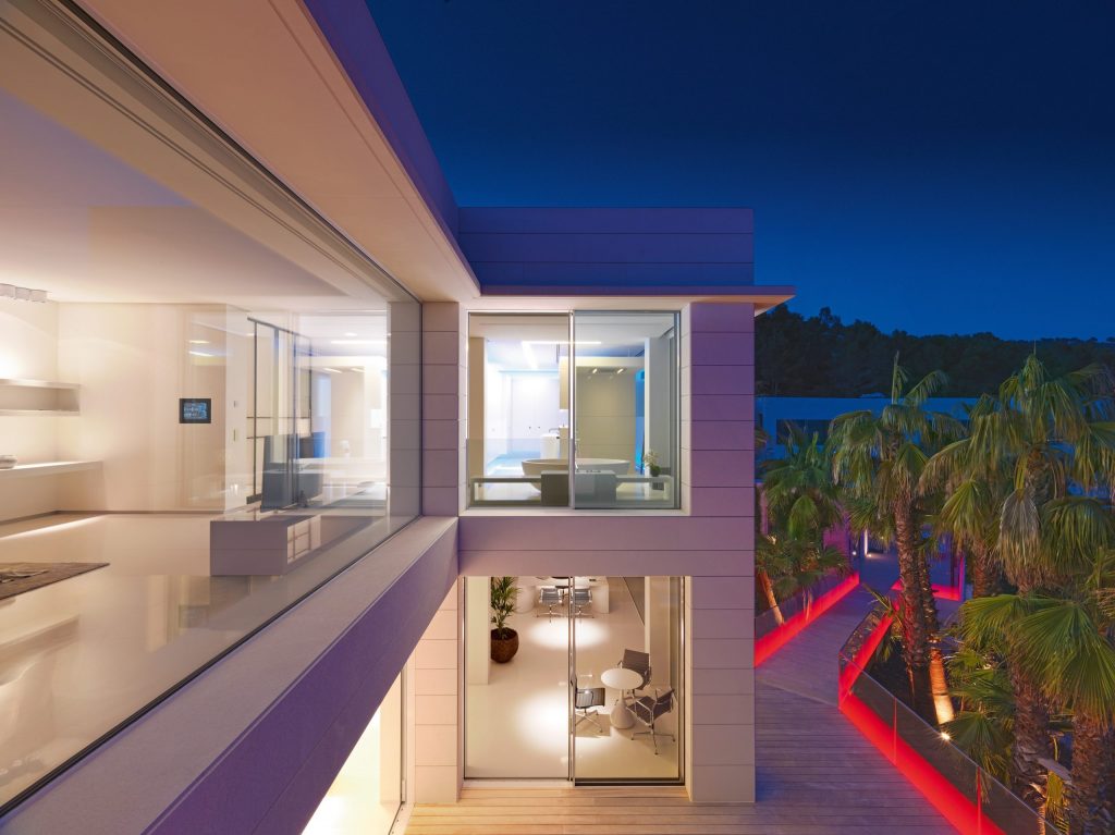The project presents tomorrow’s high-end technology, architecture and design within a stylish, comfortable and surprising environment. Just like the reptile, the house can change its colour at the touch of a button too which is why it is called “Chameleon”. Thanks to the sophisticated LED light technology different colours can be projected in all the rooms and on the exterior facades to create a live work of art.