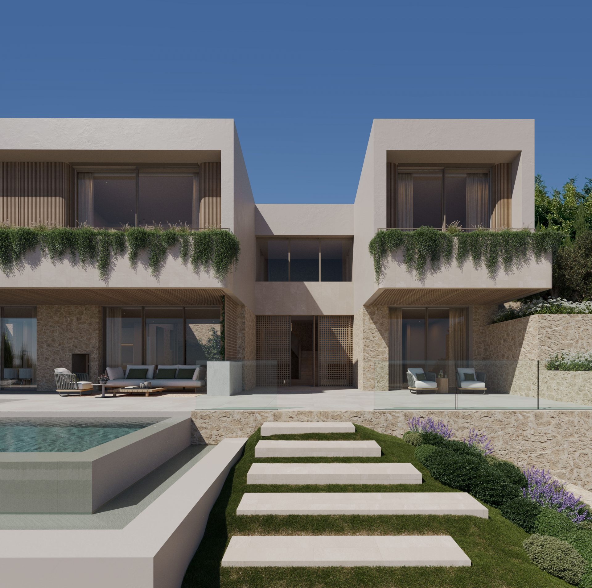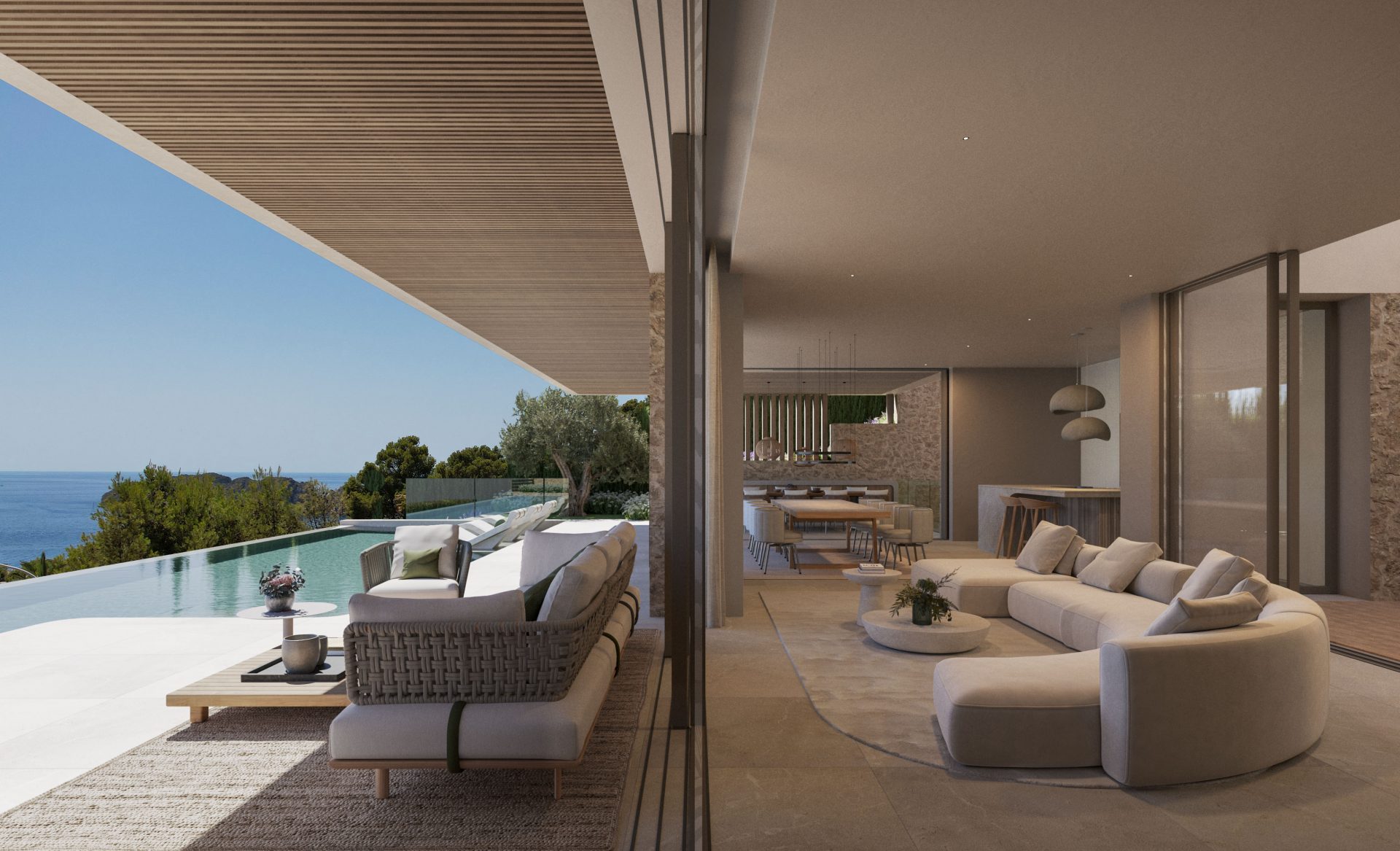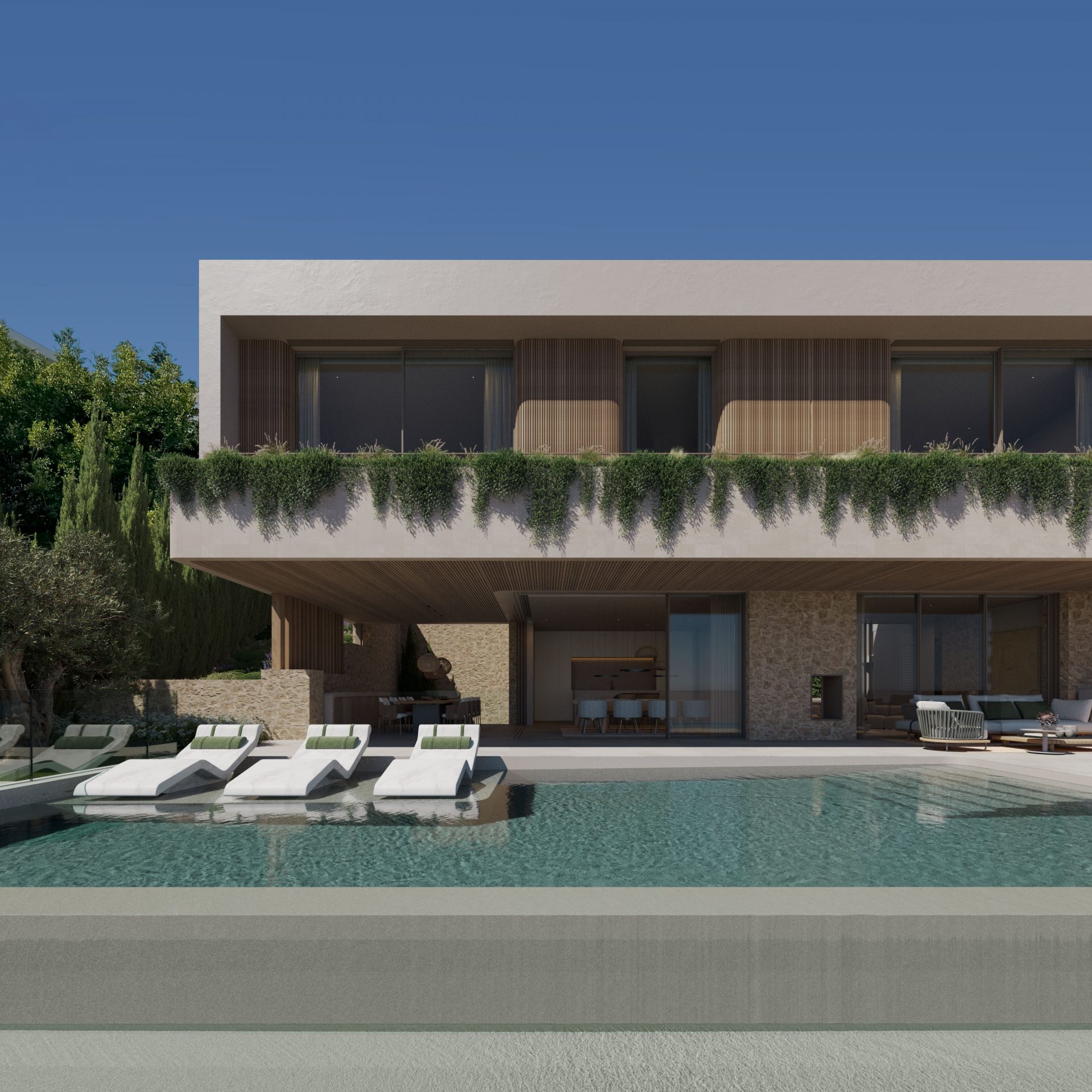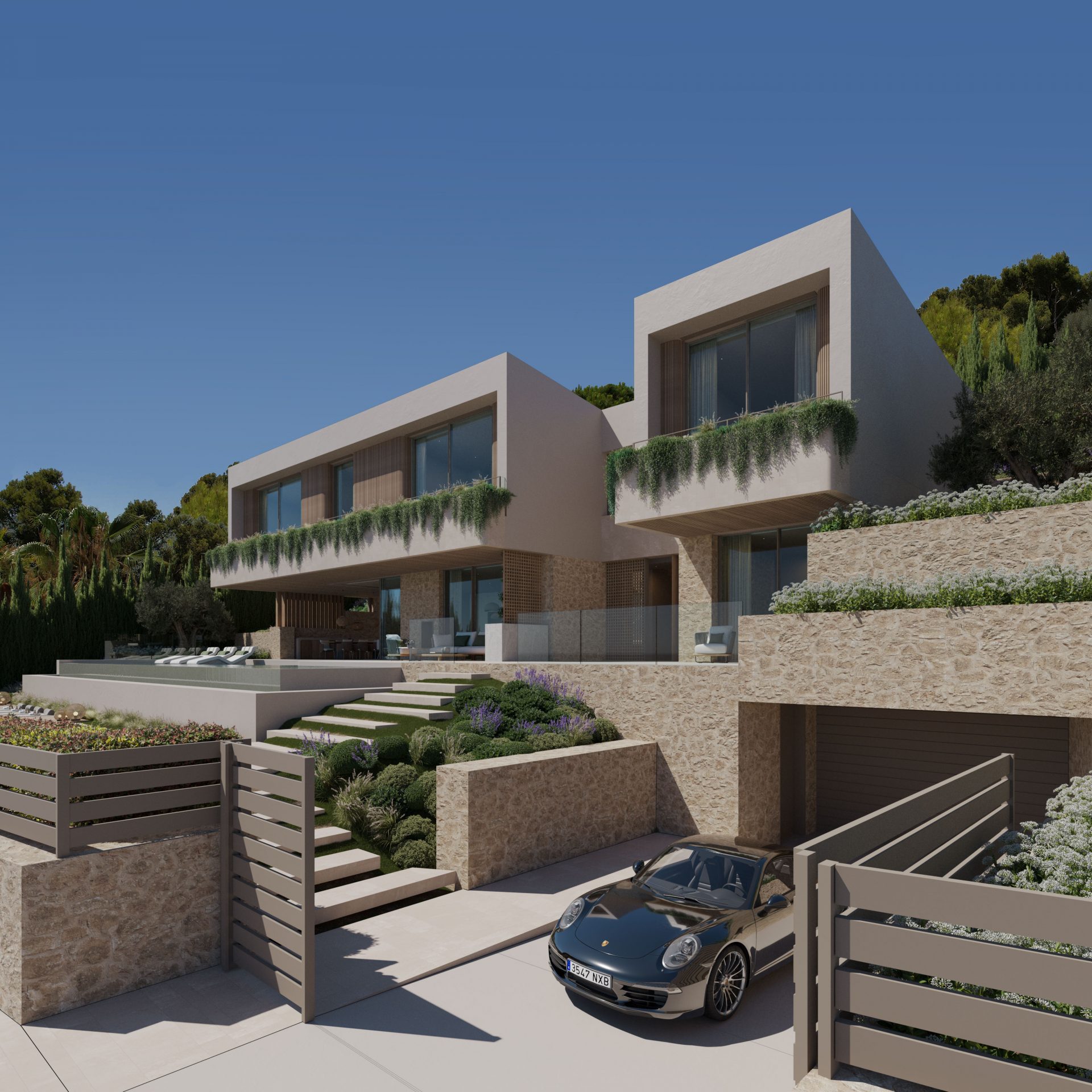 This house in Santa Ponsa combines contemporary design with Mediterranean charm. It is situated in a quiet location and offers wonderful sea views. Stone and wooden elements create a warm and inviting atmosphere. The spacious pool and extensive garden are perfect for relaxing days outdoors.
