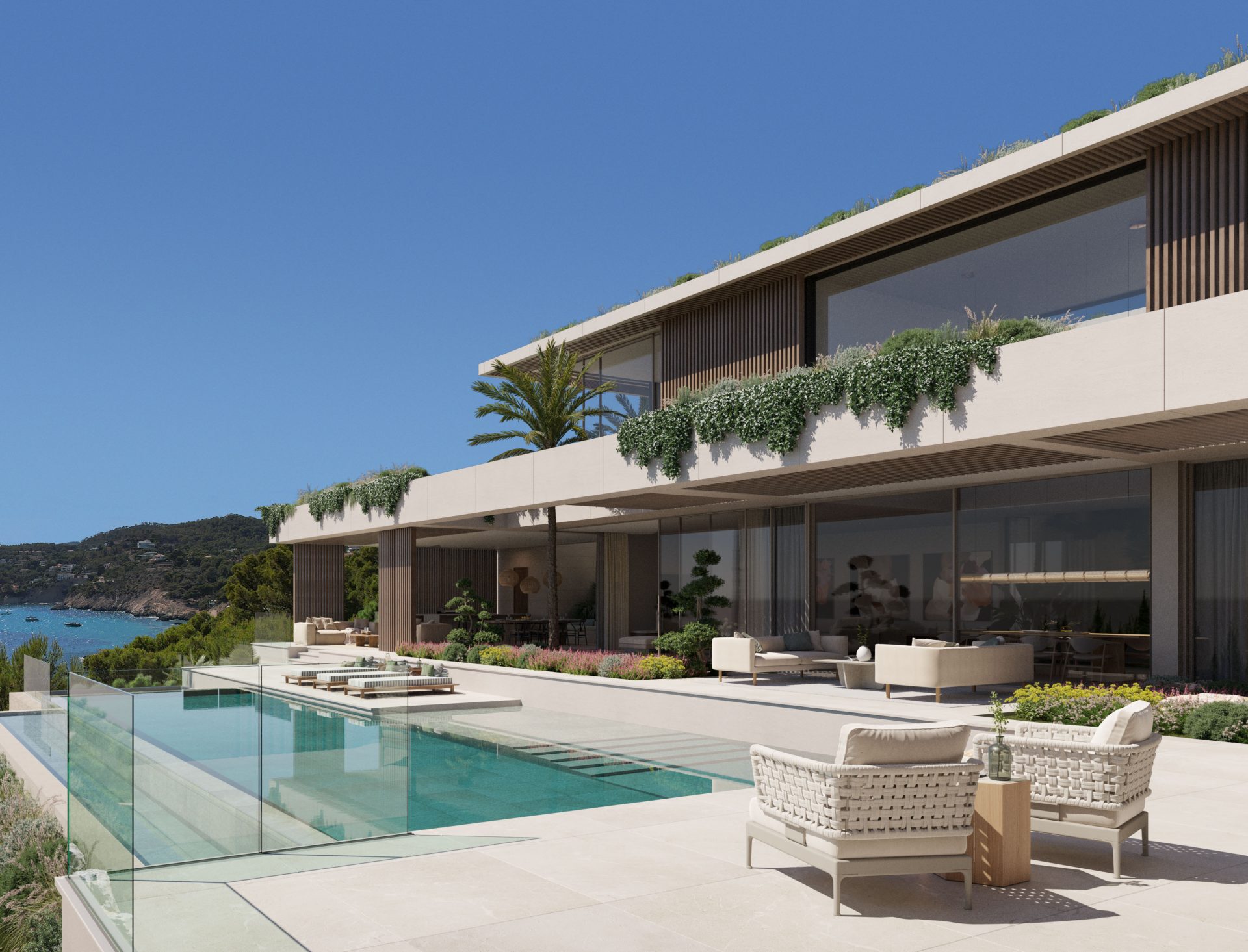 Eden – unser neues Projekt an der wunderschönen Küste von Camp de Mar. Hier entstehen die Projekte Adam und Eve. Adam, eines der exquisiten Häuser des Projekts, vereint modernes Design mit mediterranem Charme und einem offenen Wohnkonzept. Darüber hinaus bietet die Immobilie einen faszinierenden Ausblick auf das Meer und verfügt über einen großzügigen Pool.