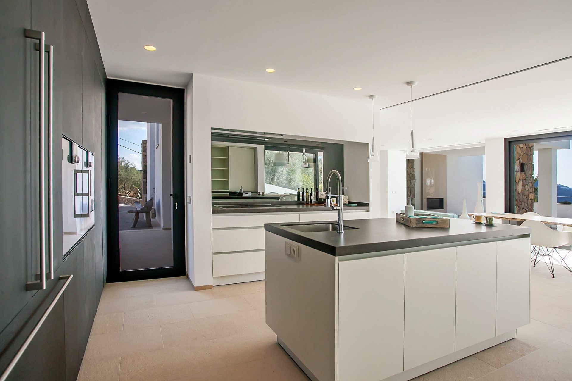 Bei diesem Projekt hat apm Teile des ursprünglichen Gebäudes abgerissen und die verbleibenden Strukturen aufwendig und vollständig renoviert. Das Ergebnis ist ein einzigartiges Anwesen in der exklusiven Wohngegend Montport in Port Andratx. Von hier aus genießen Sie einen traumhaften Blick auf die malerische Bucht Port Andratx. Das Gebäude besticht durch eine moderne Architektur, die stilvoll mit natürlichen Materialien wie Steinoptik kombiniert wurde.