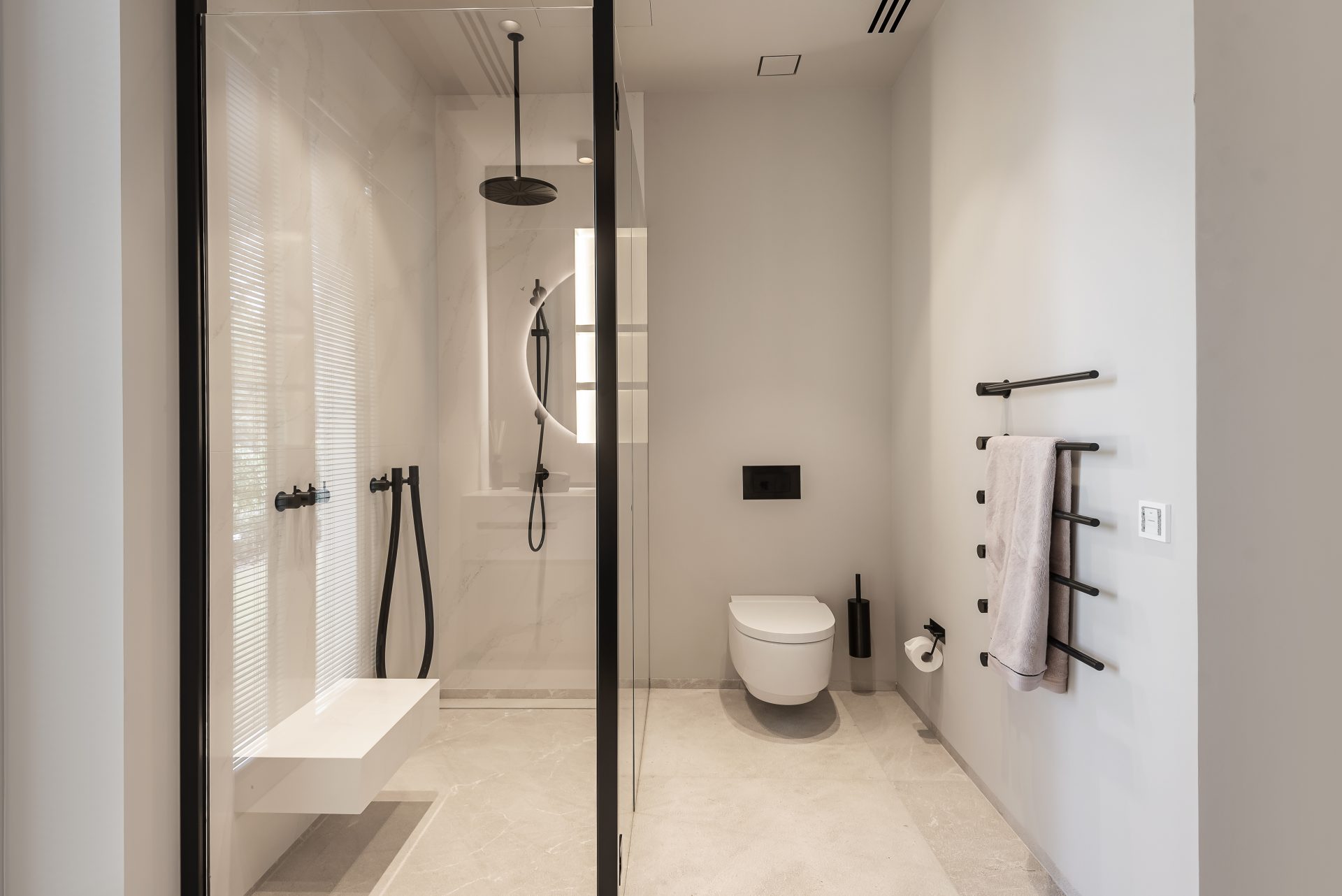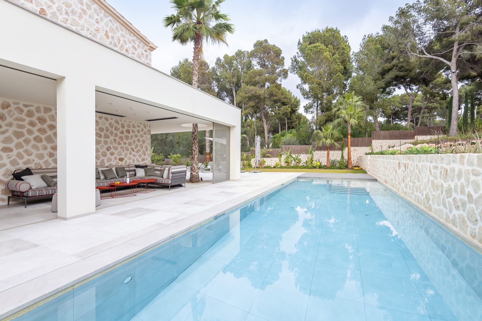 Das Objekt R 24 liegt direkt neben dem Santa Ponsa Golfplatz. Die moderne Architektur mit klaren weißen Linien wird von mediterranen Elementen ergänzt. Die Villa hat 5 Schlafzimmer mit eigenem Bad en suite, einen großen Wohnraum, eine offene Feuerstelle und eine sich anschließende Küche. Durch das Verbauen von hochwertigen Materialien, einem großzügigen Innen- und Außenbereich und einem direkten Blick auf den Golfplatz wird R 24 zu einem einzigartigen Projekt. Der verbaute Naturstein verleiht der Villa einen mediterranen Charme.