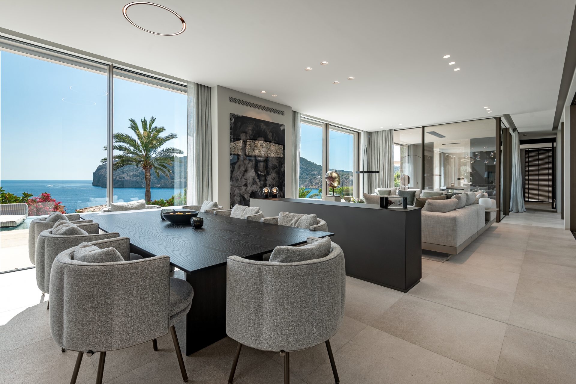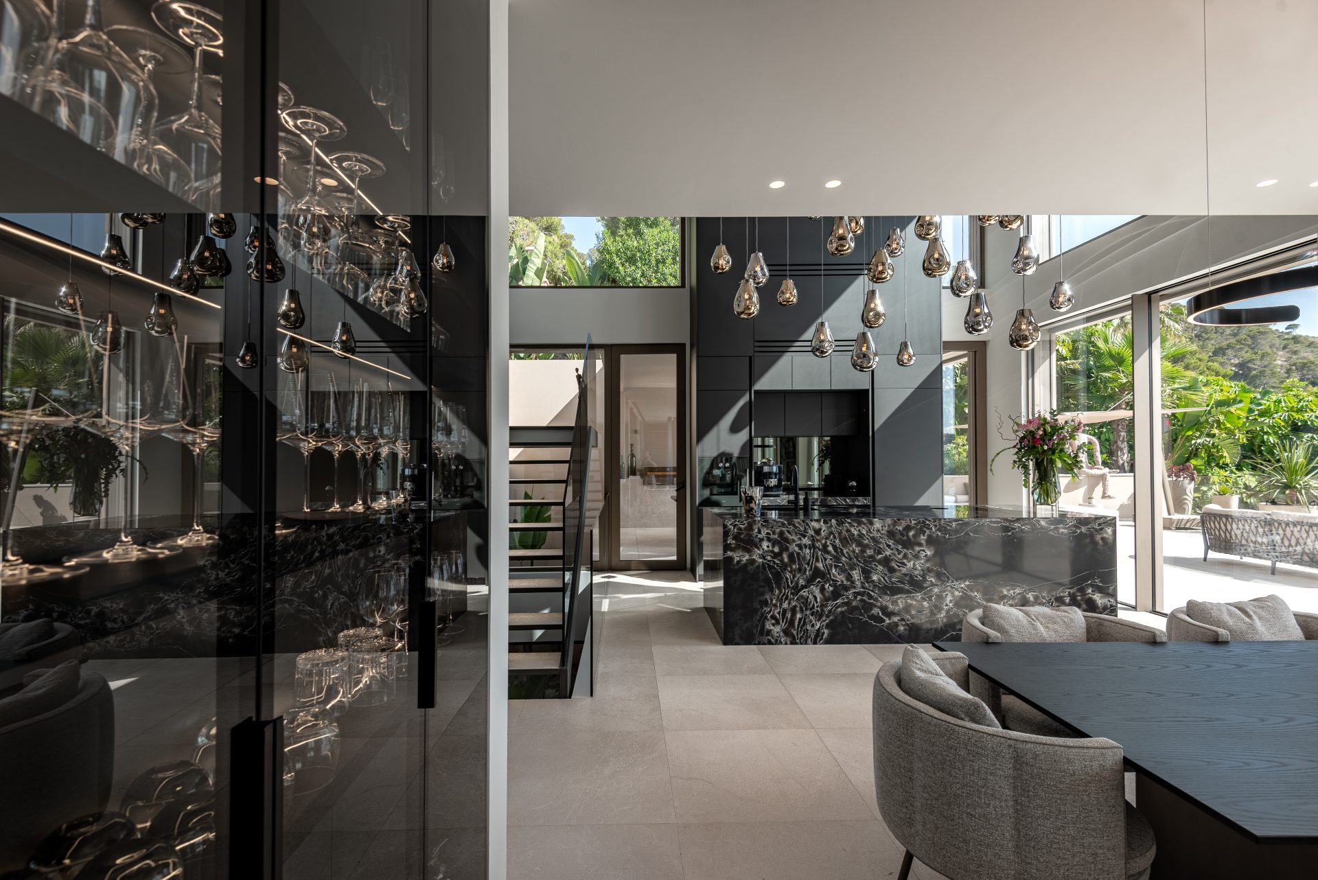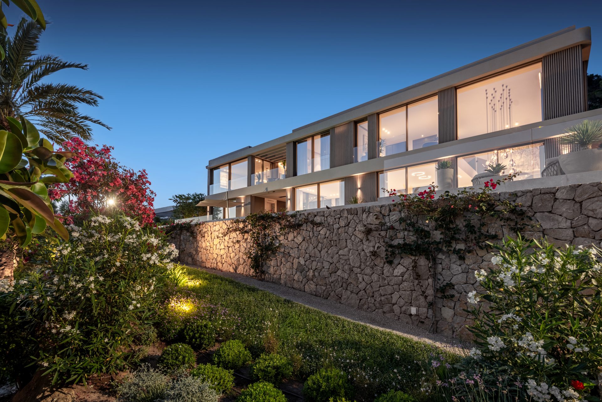 Es Salinar is built in a superior location with spectacular views over Camp de Mar, only a few minutes to the sandy beach and the golf court. Modern architecture uniquely connects the outsides with the interior. Natural stone in combination with wood elements and modern architecture turn this mansion into a truly special object.